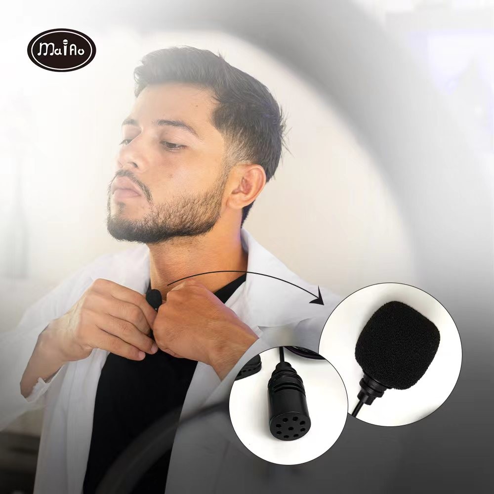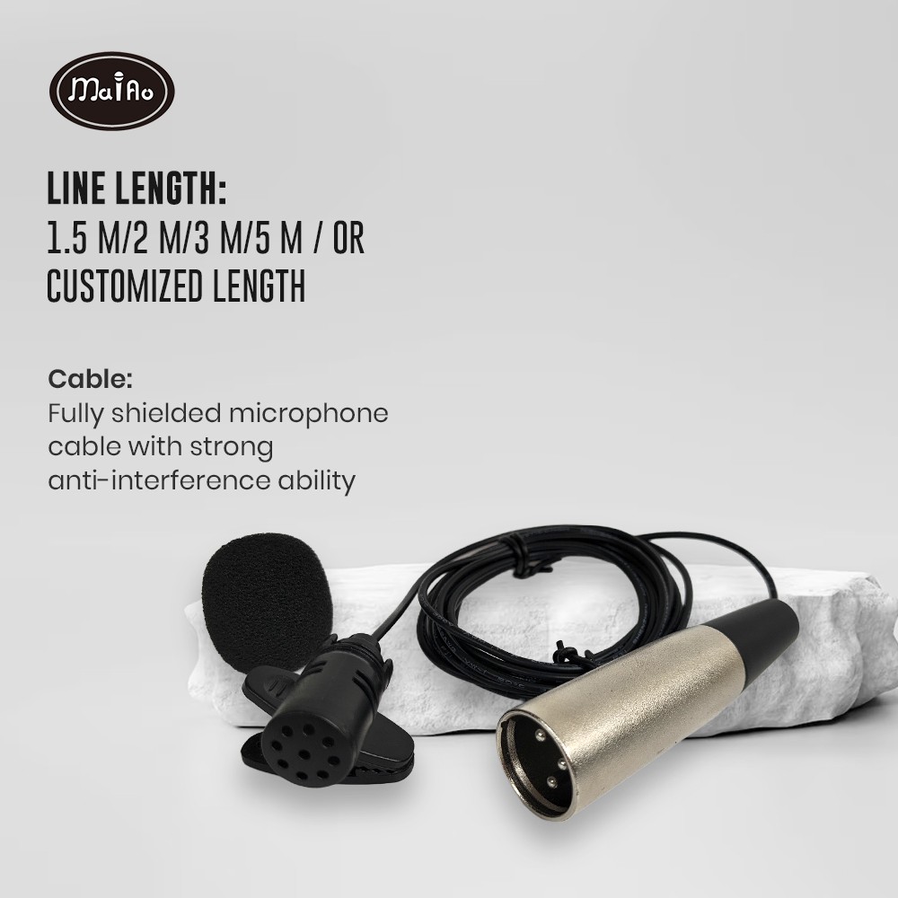 · EXTRA-LONG CORD WITH EXTENSION CORD. Our clip-on microphone has 1-3m length cord included in box. Pls choose the wire length when order.