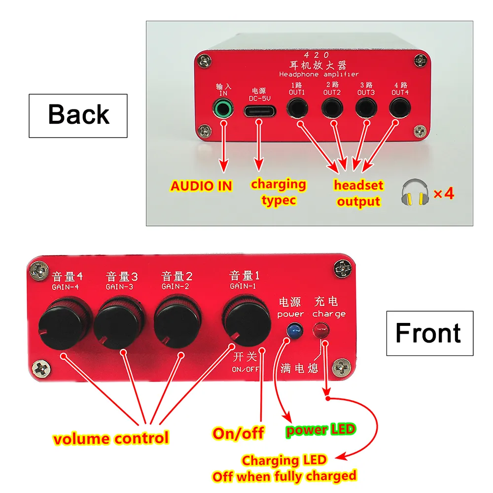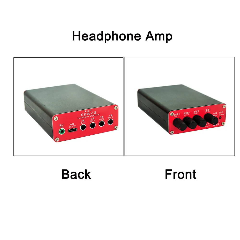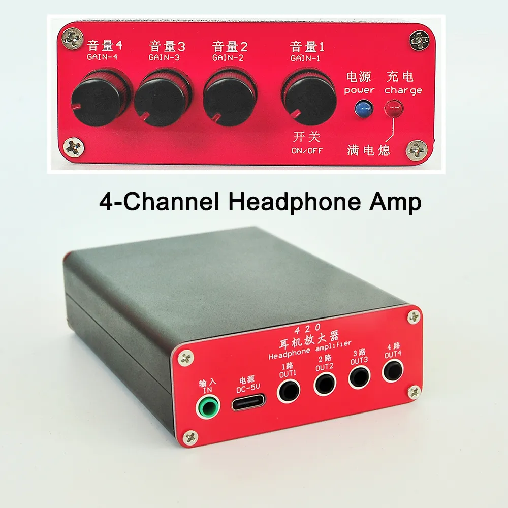 4 Channel Headphone Amplifier,4 Channel Portable Headphone Amplifier|130mW per Channel|Built‑in Rechargeable Battery|Independent Volume Control|Low‑Noise Design.