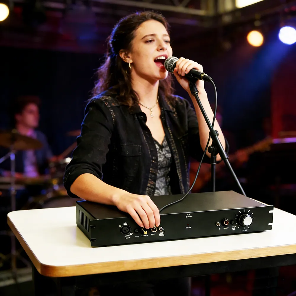 Its wonderful sound can improve the sound quality of the microphone, make the vocals more beautiful, and bring confidence to the singer. (For example, if a singer feels that their singing voice is not pleasant to listen to, after amplifying this sentence, the voice changes to become more pleasant and artistic.)