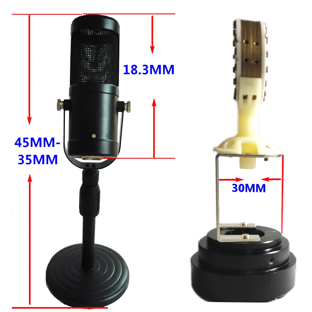I designed and produced a standing retro condenser microphone with a capacitor capsule diameter of 25mm. It needs 48V power supply and is equipped with a vertical support,